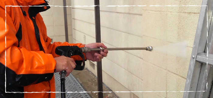 高圧洗浄機を用い、塗装面に付着したカビ、ホコリ、コケなどを洗い流します。これは、塗料の接着効率をよくするために欠かせない作業です。丁寧なクリーニング作業が、美しい仕上がりを導きます。(自然)乾燥処理を行ったら、亀裂が入っている箇所の補修処理や塗装面にできている凸凹の研磨を行って塗装の密着性を高めます。このひと手間を施すことによって、耐久性が大きくアップします。